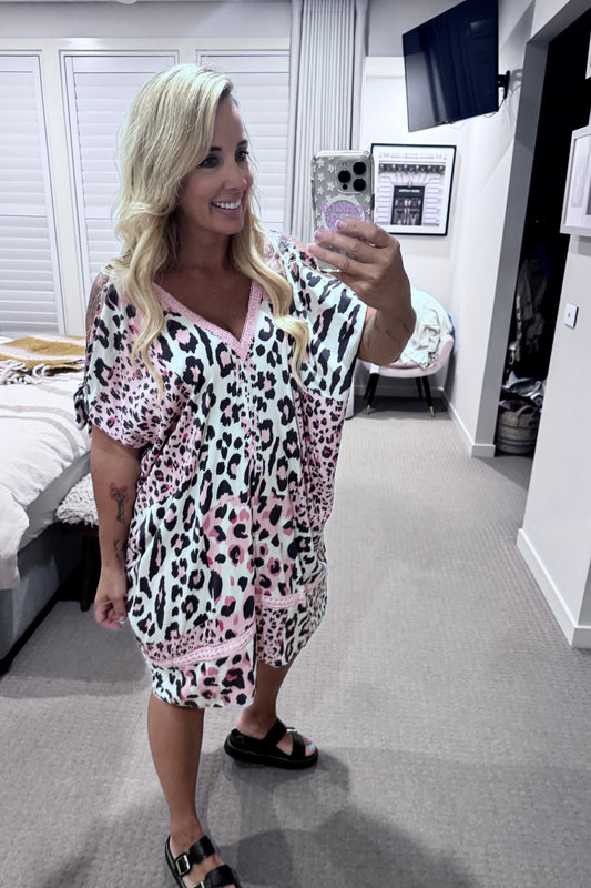 Pink Leopard Perfection Batwing Beach Dress