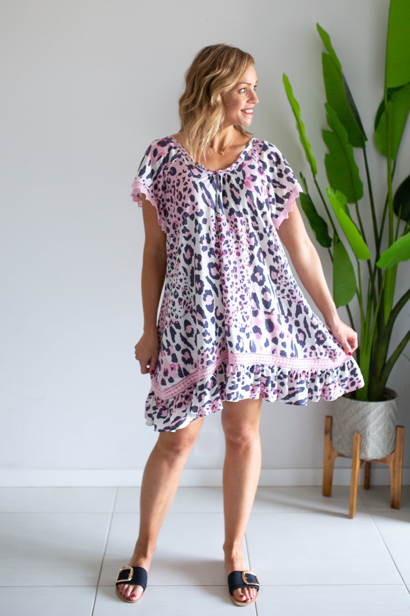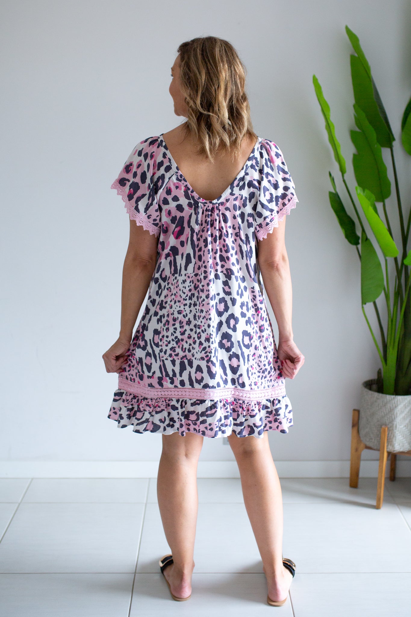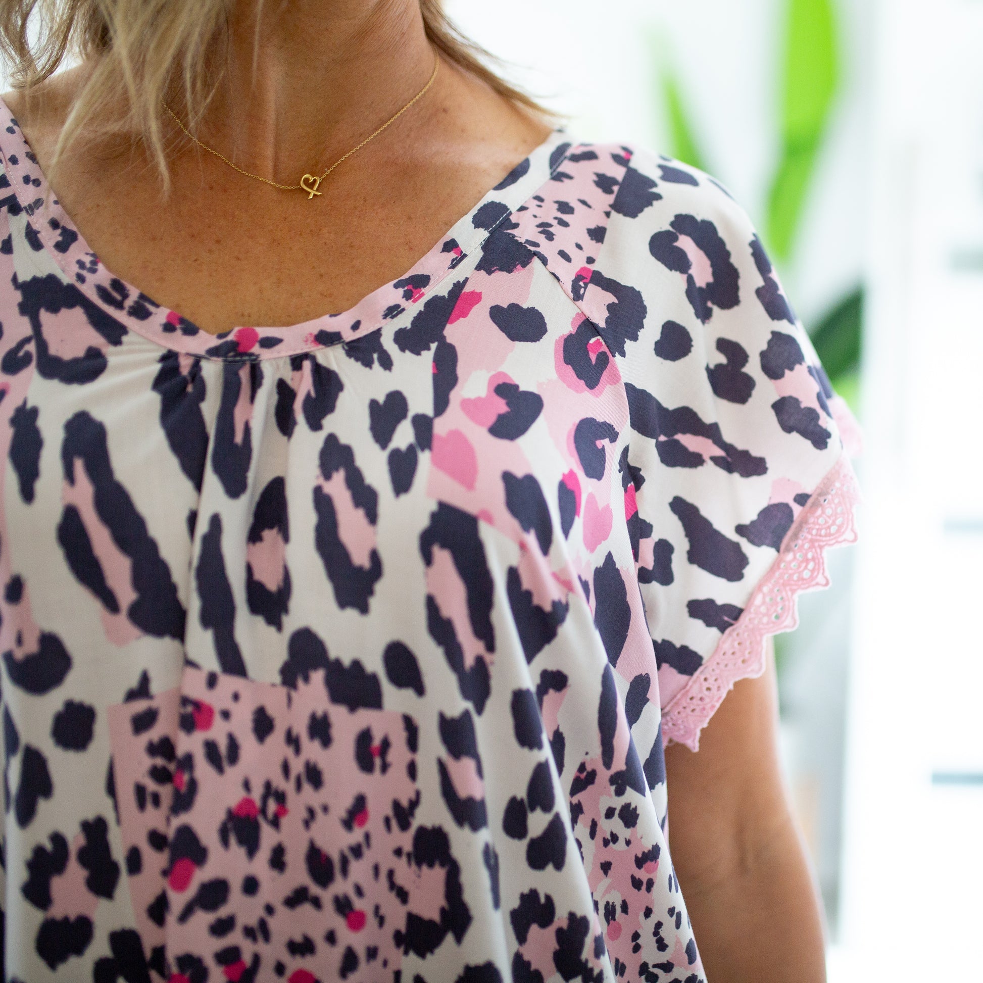 V-neck button down, with a short sleeve and soft elastic at the back to create shape.