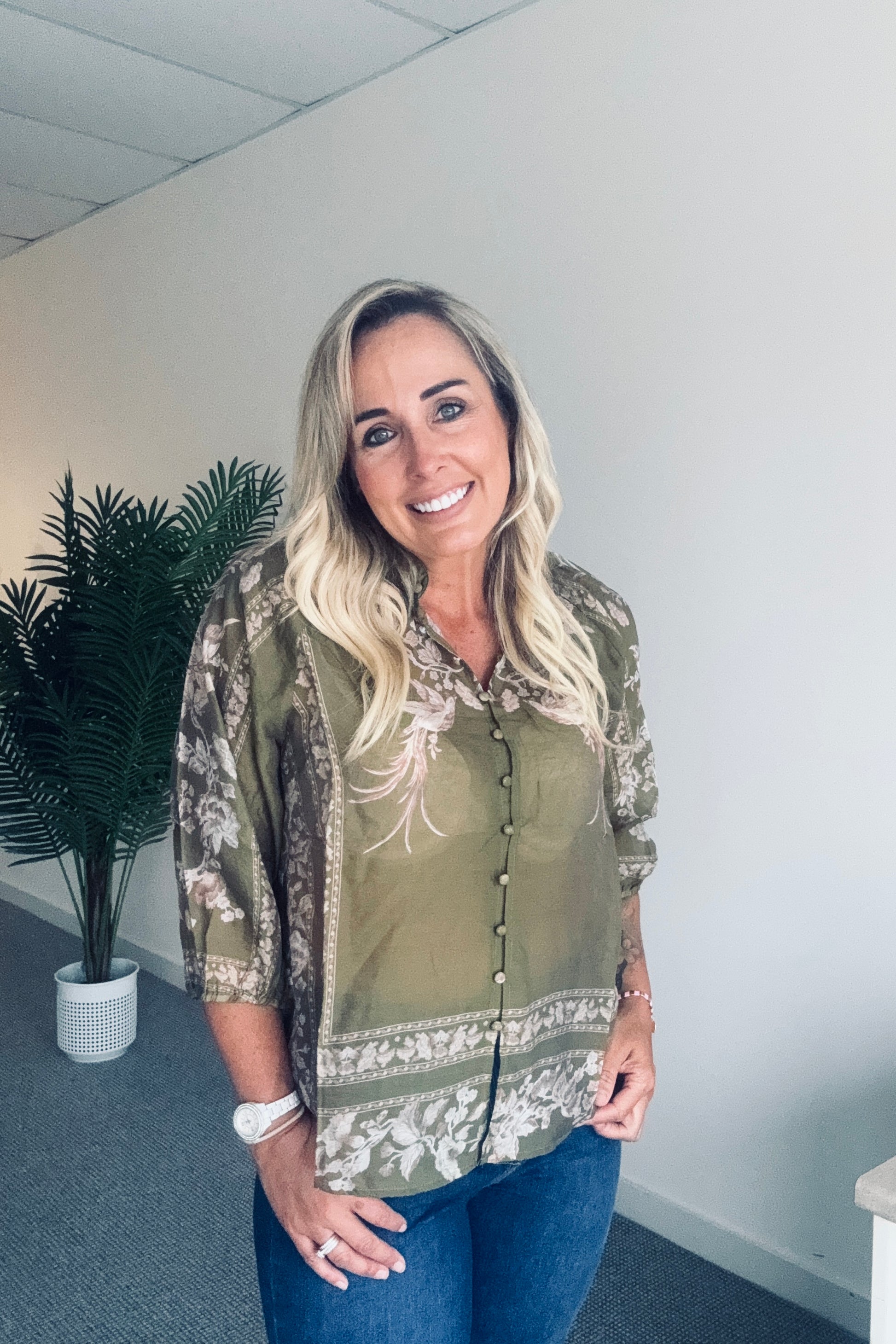 Lightweight sheer shirt, with a slight curved hem on the back.