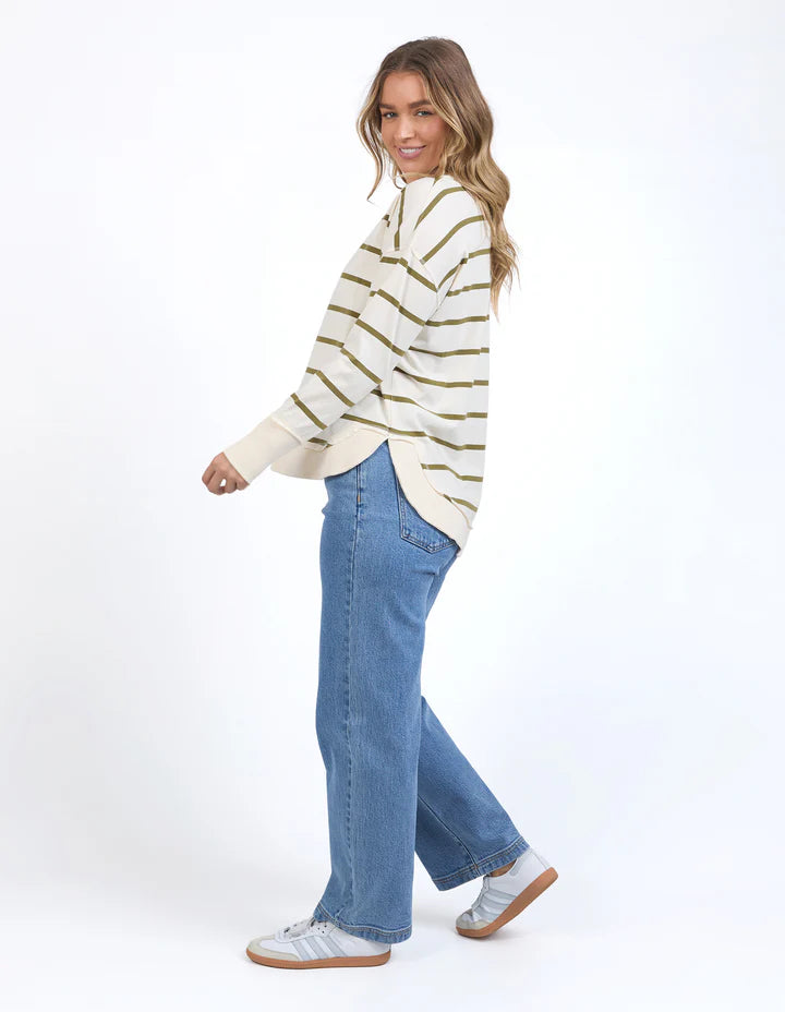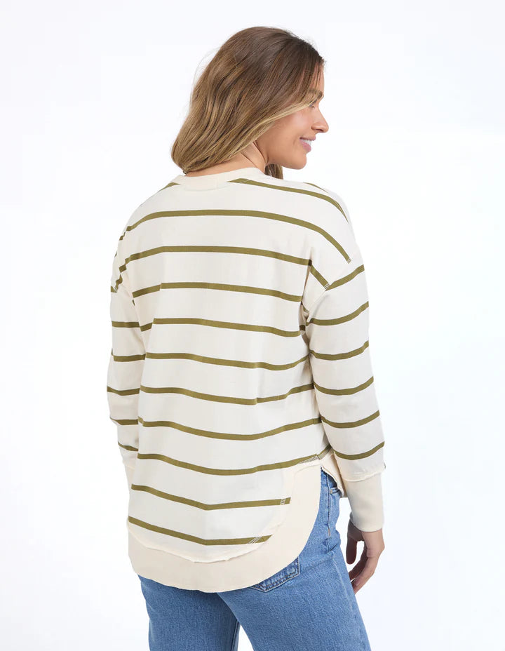 Farrah Long Sleeve Top - White/Olive Stripe