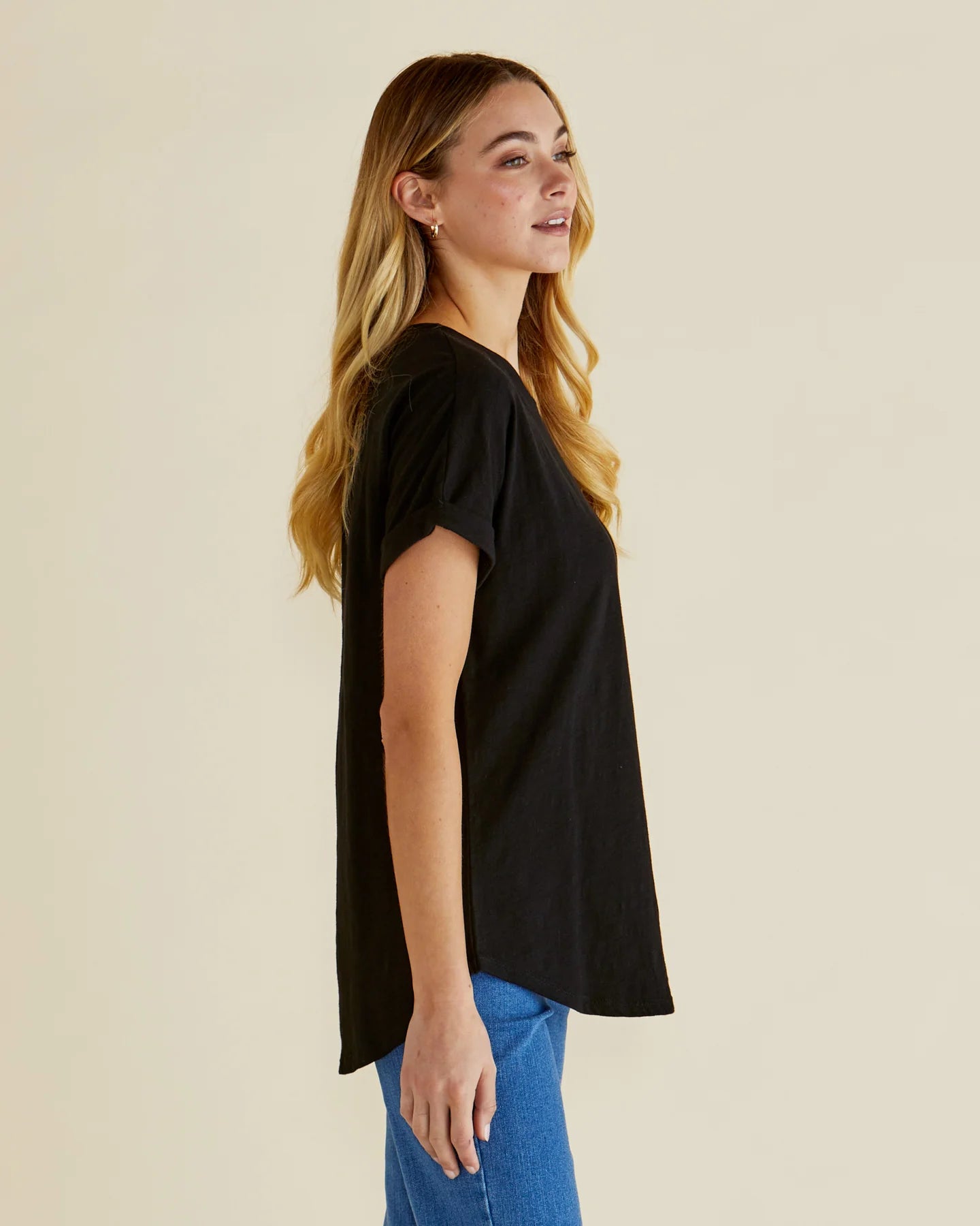 Looking for a tee that's both comfy and versatile? Meet Hailey, the newest addition to our Essentials Range. Made from BCI cotton, this tee is soft to the touch and perfect for layering. It's so comfy you'll never want to take it off! Plus, its short sleeves make it perfect for warmer weather or layering under your favorite blazers and cardigans. Whether you're lounging at home or running errands, Hailey's got you covered. And with its classic design and high-quality materials, this tee is sure to be a staple in your wardrobe for years to come. So go ahead, add Hailey to your cart and get ready to feel comfy and stylish all day long!