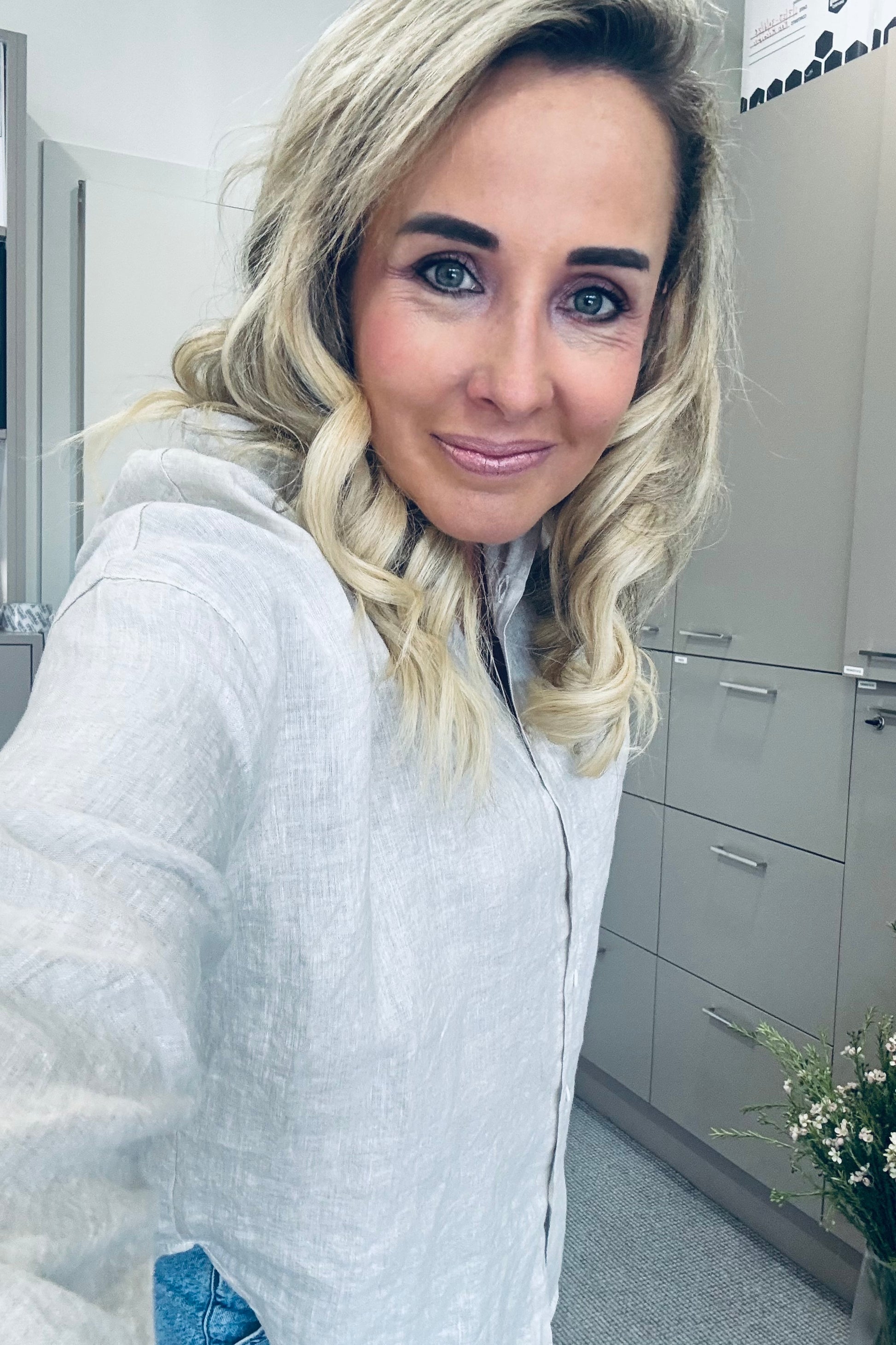 100% Linen curved hem shirt, long sleeve that can be worn folded up (as per pic)