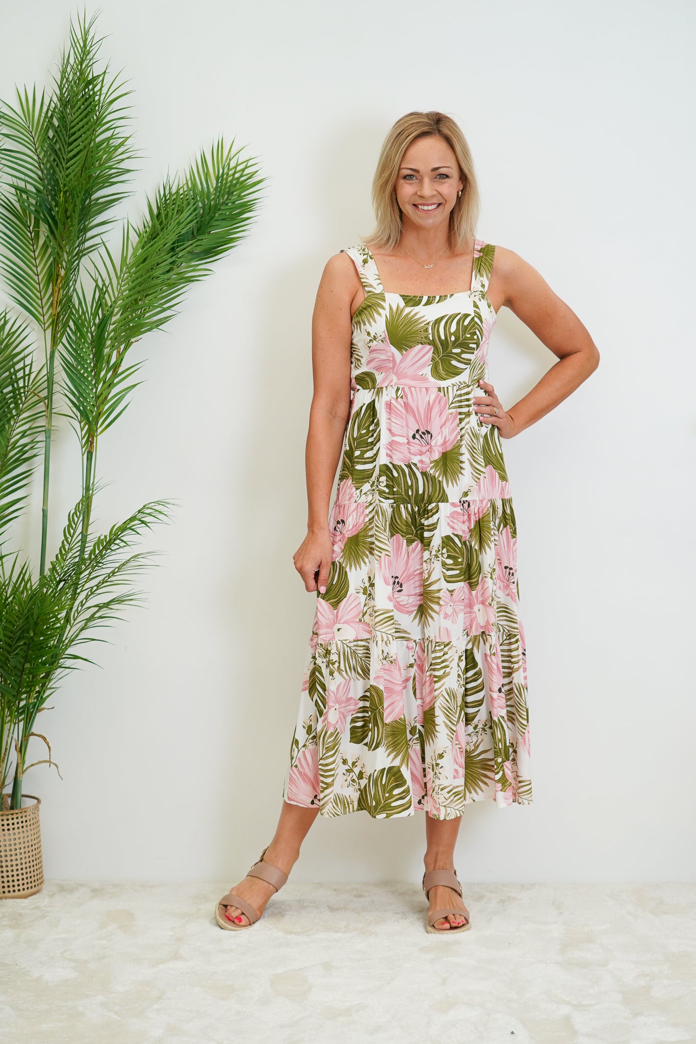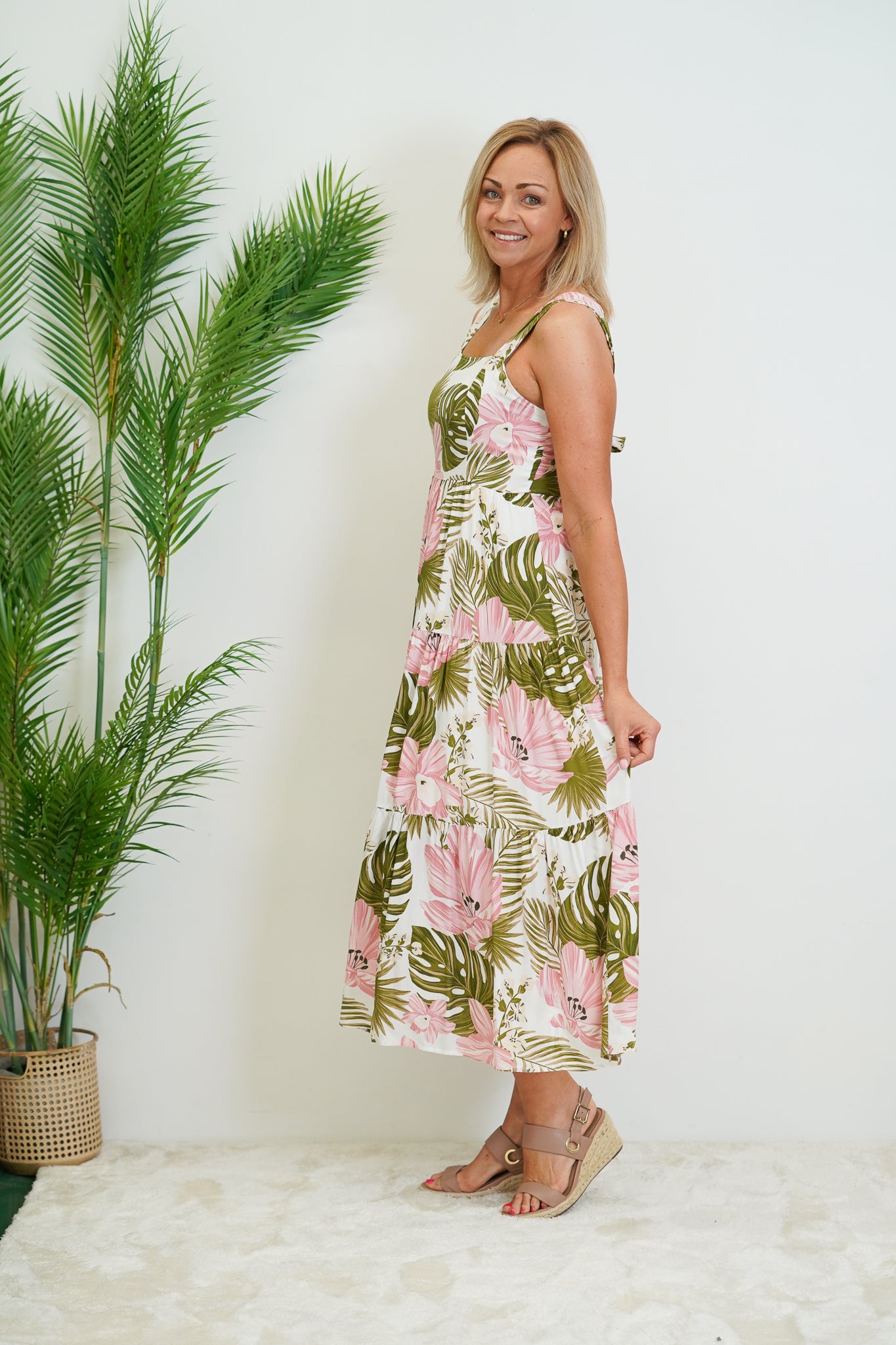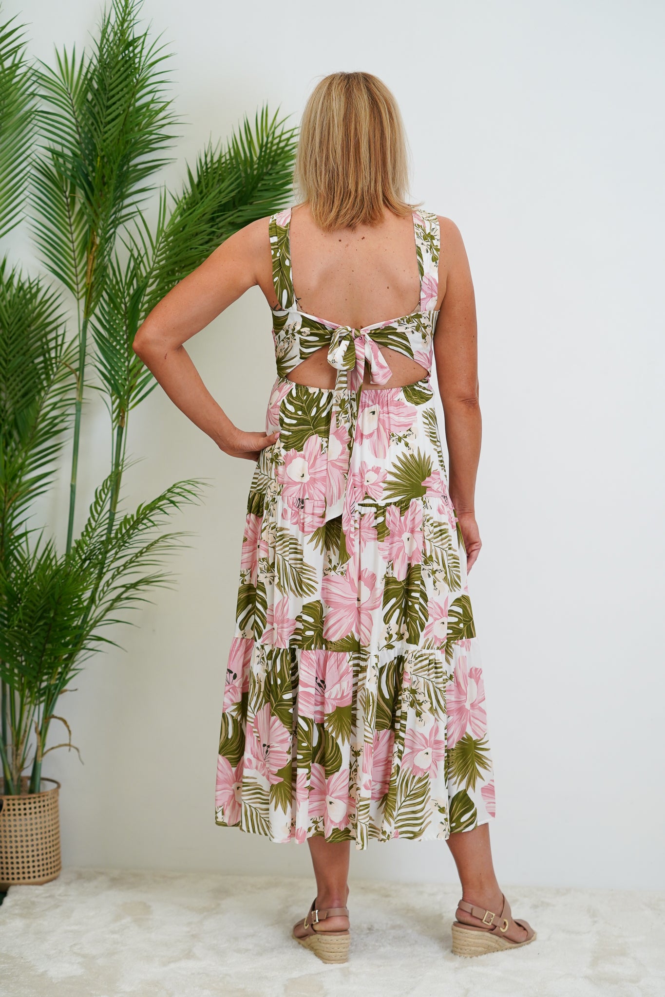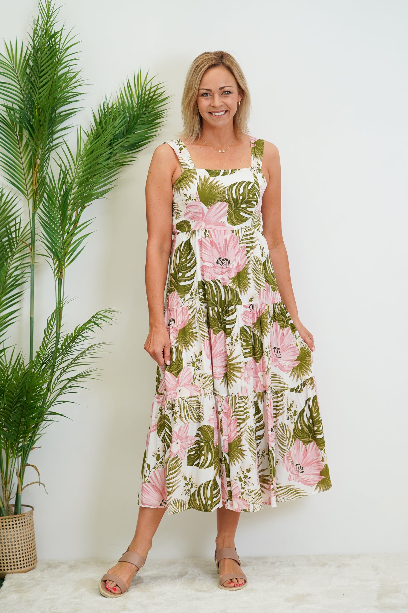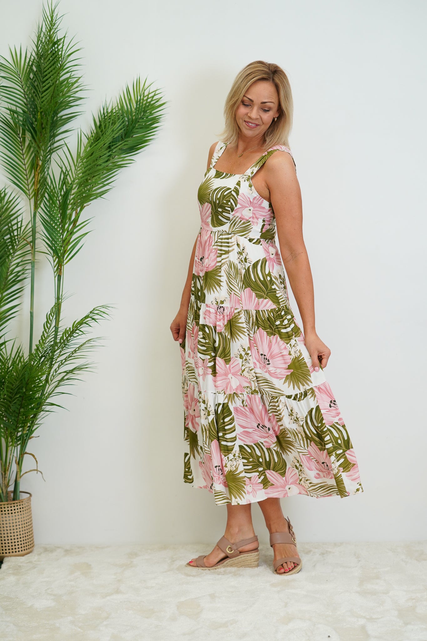 Long sleeve shift style dress with optional waist tie and button down buttons.