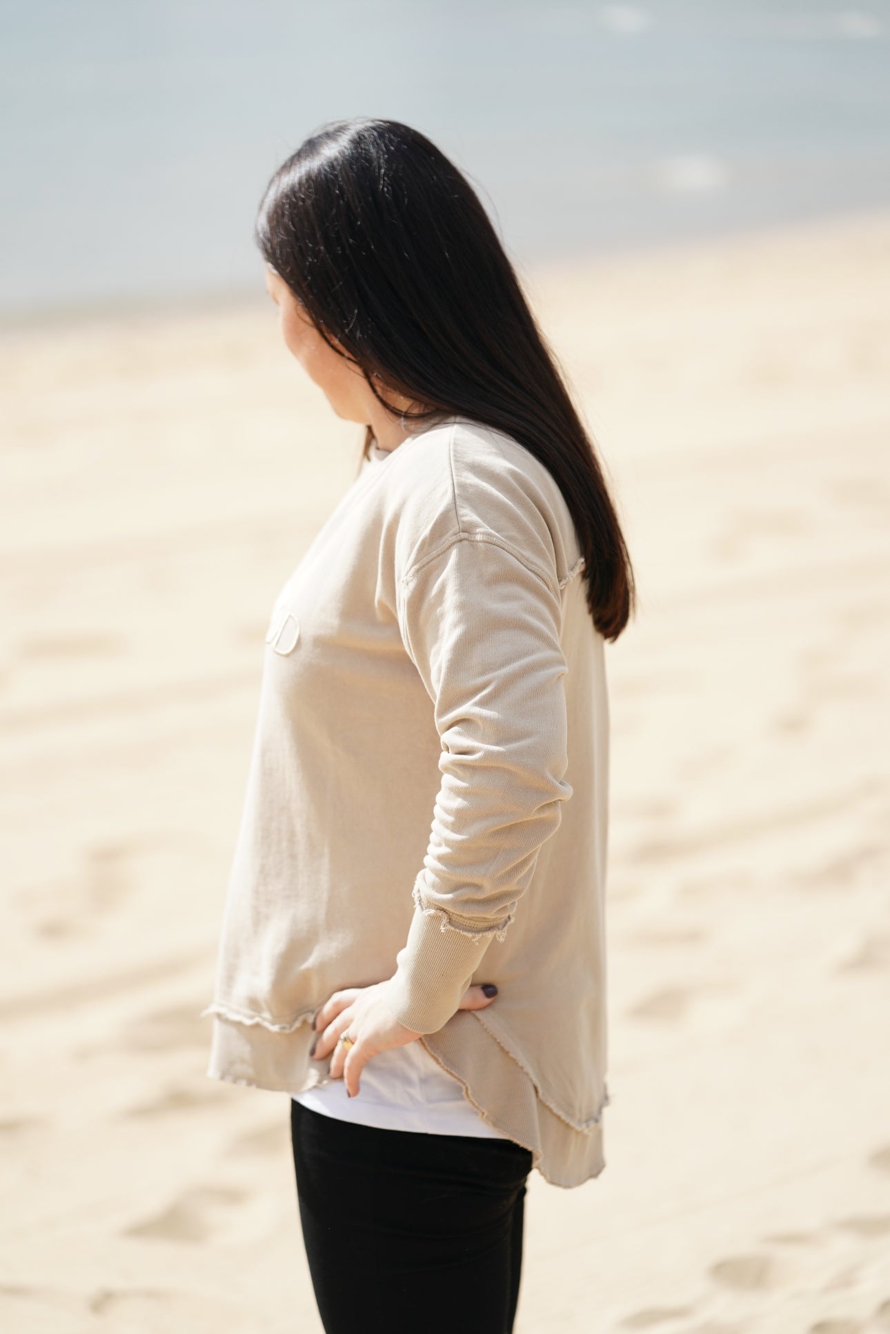 - Long sleeves with dropped shoulder seams and wide cuffs