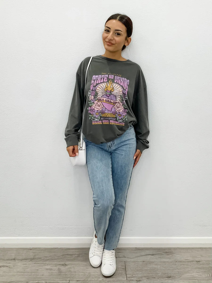 Swirls Tee- Charcoal